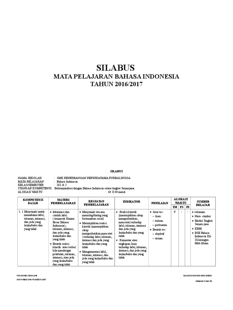 Silabus revisi 2020 bahasa indonesia kelas 12.